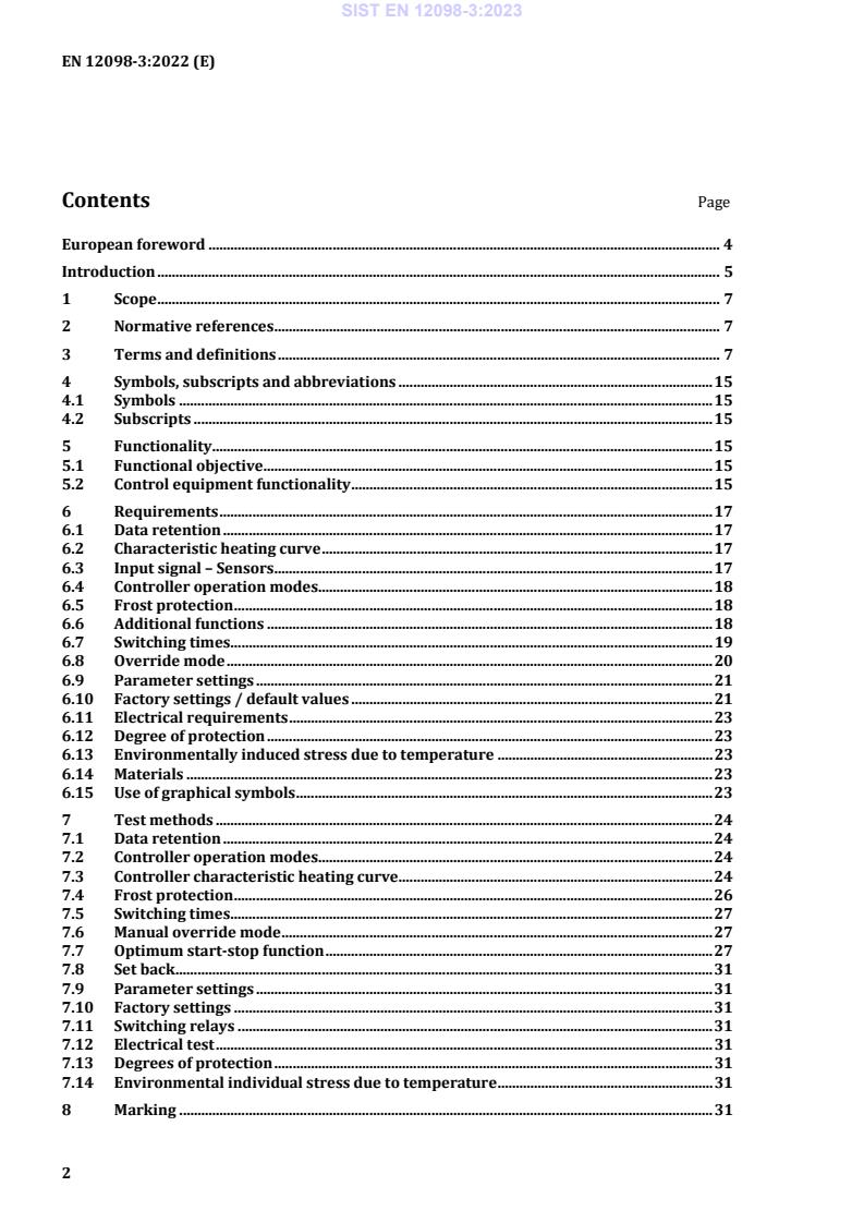 EN 12098-3:2022 is a standard published by the European Committee for Standardization (CEN). Its full title is "Energy performance of buildings - Controls for heating systems - Part 3: Control equipment for electrical heating systems - Modules M3-5,6,7,8". This standard covers: This document is applicable to electronic control equipment for heating systems with direct electrical emission, which have an integrated outside compensated function and or optimum start/stop function. This control equipment controls the distribution and/or the generation of heat in relation to the outside temperature and time and other reference variables. This document is also applicable to controllers that contain an integrated optimum start or an optimum start-stop control function. The controller modulates heating or control modes of electronic individual zone or emitter control equipment. Safety requirements on heating systems remain unaffected by this document. The dynamic behaviour of the local thermostats, sensors, or actuators is not covered in this document. A multi-distribution and/or multi-generation system needs a coordinated solution to prevent undesired interaction and is not part of this document.