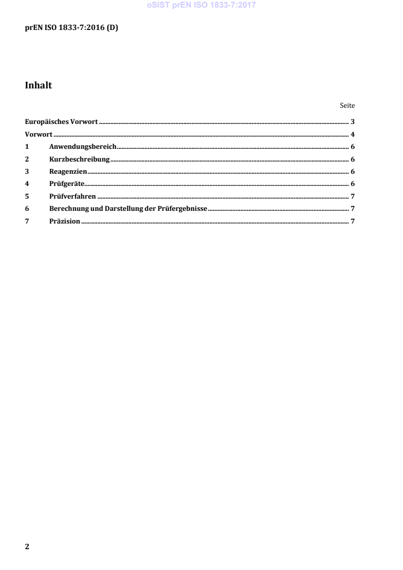 © 2016 CEN Alle Rechte der Verwertung, gleich in welcher Form und in welchem Ref. Nr. prEN ISO 1833-7:2016 D