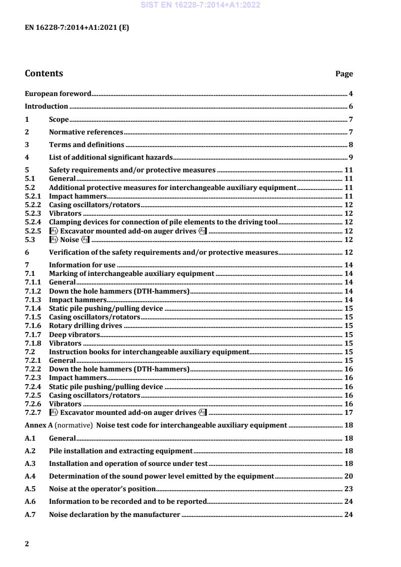 Keywords: EN 16228-7, drilling and foundation equipment safety, interchangeable auxiliary equipment, impact hammers, pile driving safety, vibrators, casing rotators, noise testing, CEN standard, Machinery Directive.