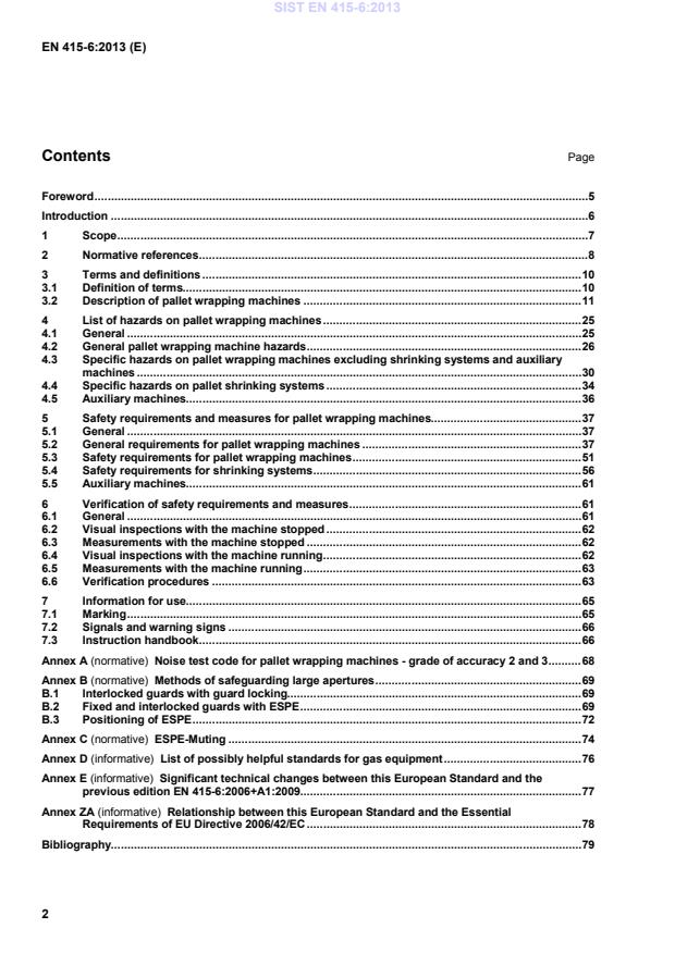 Relationship between this European Standard and the Essential Requirements of EU Directive 2006/42/EC . 78 Bibliography. 79