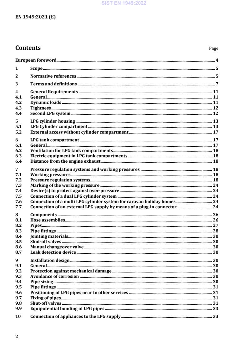 EN 1949:2021 is a CEN European Standard specifying safety and installation requirements for LPG systems for habitation purposes in leisure accommodation vehicles (motorhomes, caravans, campervans) and for accommodation purposes in other vehicles. The standard covers installations supplied with 3rd family gases (LPG) and applies to LPG tanks that meet the Pressure Equipment Directive (2014/68/EU). EN 1949:2021 supersedes EN 1949:2011+A1:2013 and introduces updated requirements including mandatory manufacturer declaration of conformity and expanded tank and compartment provisions.
