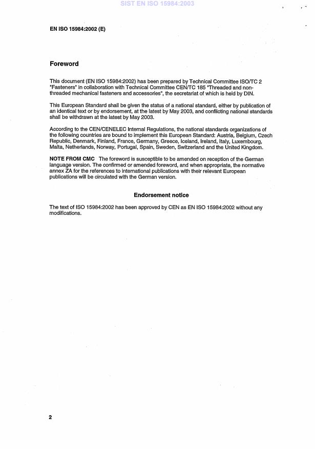 ISO 15984 was prepared by Technical Committee ISO/TC 2, Fasteners.