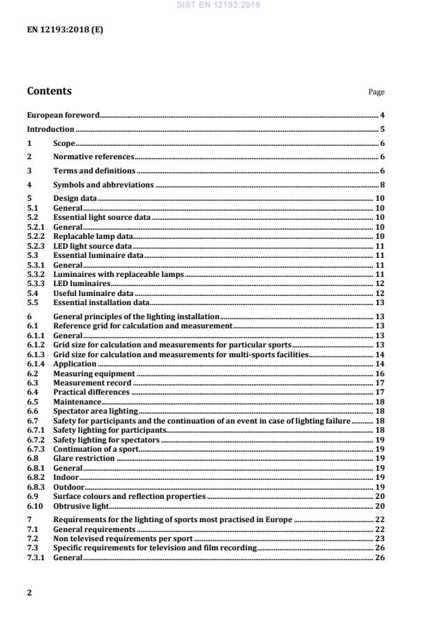 Dieses Dokument legt die Beleuchtung von Sportstätten in Innen und Außenanlagen für die in Europa am häufigsten ausgeübten Sportarten fest. Dieses Dokument zieht lediglich künstliche Beleuchtung in Betracht. Es gibt Werte für Beleuchtungsstärken, Gleichmäßigkeit, Blendungsbegrenzung und Farbeigenschaften der Lichtquellen an, um die Beleuchtung von Sportstätten planen und überprüfen zu können. Alle Anforderungen sind als Mindestanforderungen vorgesehen. Verfahren zur Messung dieser Werte werden ebenfalls angegeben. Für die Blendungsbegrenzung werden für einzelne Sportarten außerdem Einschränkungen bezüglich der Anordnung der Leuchten angegeben.