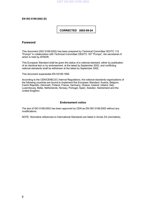 Technical specifications for centrifugal pumps - Class II (ISO 5199:2002)