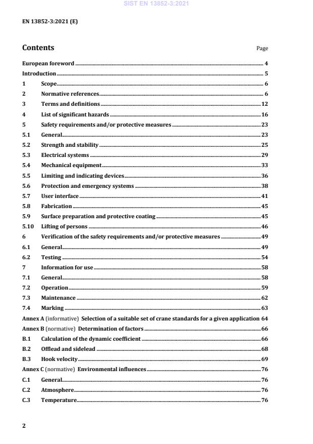 - Normative and informative annexes covering environmental influences, failure mode analyses, control arrangements, brake requirements, hazardous‑area equipment and a typical crane data sheet
