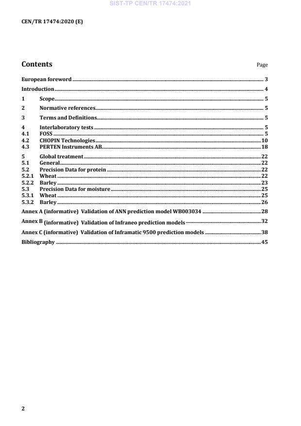 CEN/TR 17474:2020 - "Cereals (wheat and barley) - Technical Report of the interlaboratory studies for the determination of moisture and protein in whole kernels by near infrared spectroscopy" documents the interlaboratory evaluation of near infrared spectroscopy (NIR) methods applied to whole-kernel wheat and barley. The report establishes the repeatability and reproducibility data used to set precision criteria in EN 15948 (method accuracy is referenced there). It summarises three multi-lab studies (managed by FOSS, CHOPIN Technologies and PERTEN) and statistical treatment according to ISO 5725.