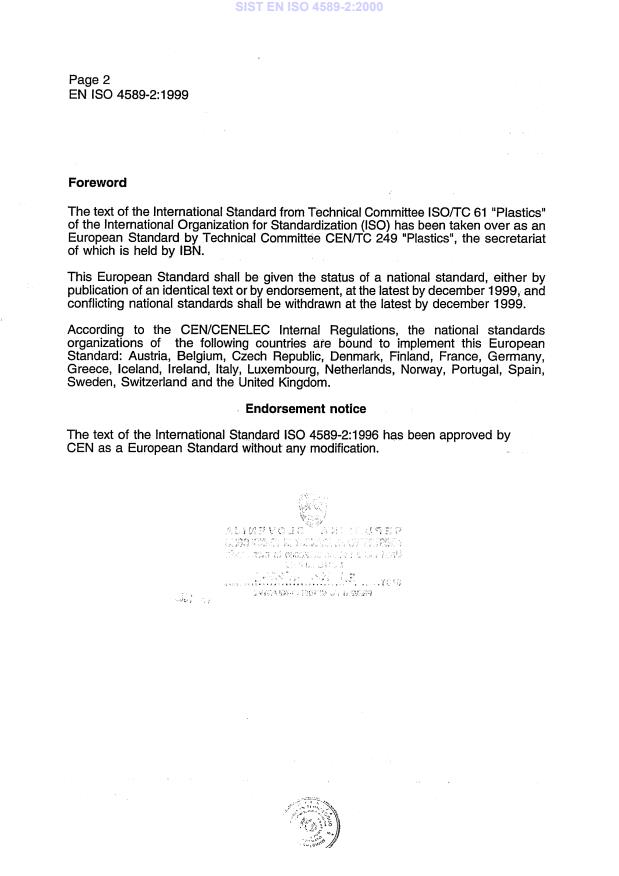 EN ISO 4589-2:1999 has the following relationships with other standards: It is inter standard links to EN ISO 4589-2:2017, EN ISO 4589-2:1999/A1:2006. Understanding these relationships helps ensure you are using the most current and applicable version of the standard.