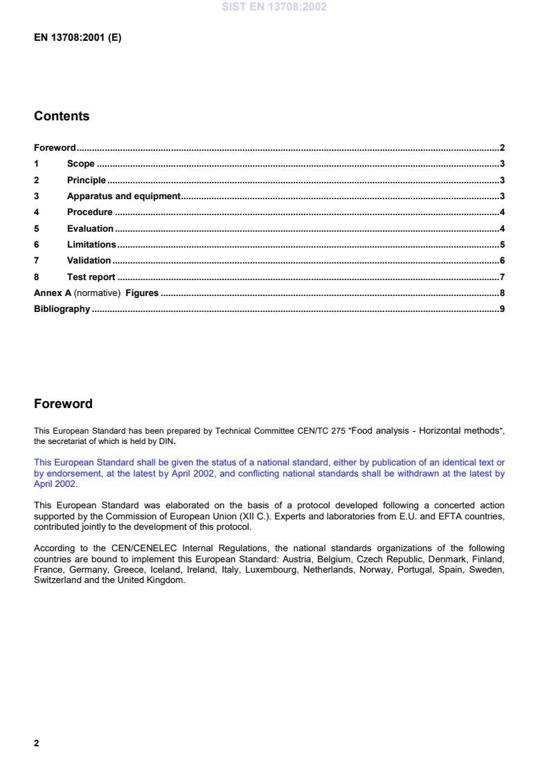 Figures.8Bibliography.9ForewordThis European Standard has been prepared by Technical Committee CEN/TC 275 "Food analysis - Horizontal methods",the secretariat of which is held by DIN.This European Standard shall be given the status of a national standard, either by publication of an identical text orby endorsement, at the latest by April 2002, and conflicting national standards shall be withdrawn at the latest byApril 2002.This European Standard was elaborated on the basis of a protocol developed following a concerted actionsupported by the Commission of European Union (XII C.). Experts and laboratories from E.U. and EFTA countries,contributed jointly to the development of this protocol.According to the CEN/CENELEC Internal Regulations, the national standards organizations of the followingcountries are bound to implement this European Standard: Austria, Belgium, Czech Republic, Denmark, Finland,France, Germany, Greece, Iceland, Ireland, Italy, Luxembourg, Netherlands, Norway, Portugal, Spain, Sweden,Switzerland and the United Kingdom.SIST EN 13708:2002