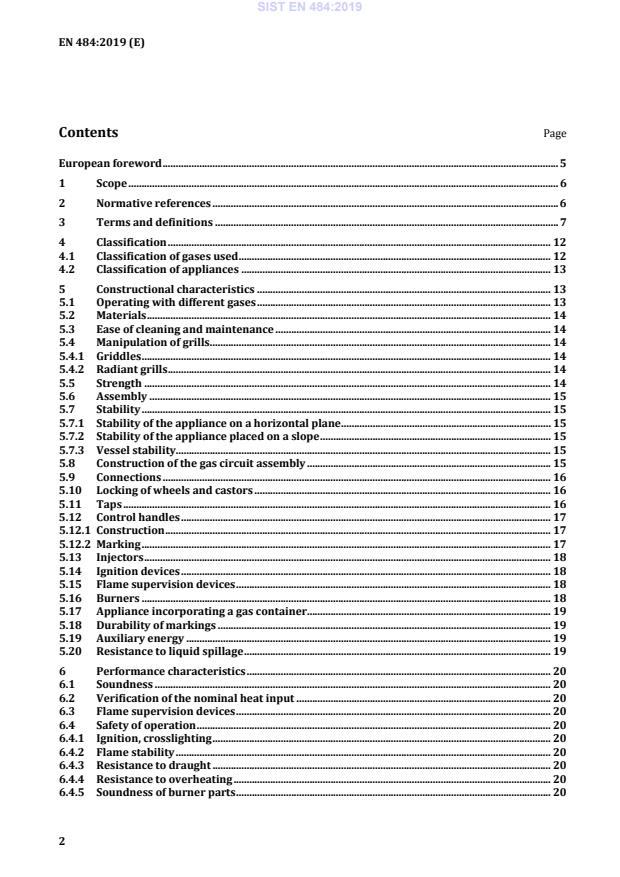 The EN 484:2019 standard presents a comprehensive specification for dedicated liquefied petroleum gas (LPG) appliances, specifically focusing on independent stoves, including those that incorporate a grill designed for outdoor use. Its scope effectively defines the constructional and performance characteristics, safety specifications, rational energy usage, relevant test methods, and marking requirements pertinent to these appliances, ensuring clarity and consistency for manufacturers and users alike. One of the significant strengths of this standard lies in its detailed safety specifications, which are critical given the potential hazards associated with LPG use. By outlining rigorous construction standards, EN 484:2019 promotes the safe operation of independent stoves and side burners, ultimately enhancing the safety of outdoor cooking activities. The inclusion of specific test methods further reinforces its relevance, as these methods facilitate the assessment of compliance with the stated safety and performance characteristics. Furthermore, the standard effectively addresses the environmental aspect by emphasizing the rational use of energy, particularly for appliances with lower heat inputs. By recognizing that independent stove burners with nominal heat input below 1.16 kW and griddles do not require special energy usage mandates, it acknowledges practical usage scenarios while still promoting energy efficiency principles for larger appliances. The clear demarcation of the appliances covered under this standard, specifically those that operate outdoors and use gases of the third family according to EN 437:2018, ensures that manufacturers understand their obligations and the specific market needs. However, it also thoughtfully excludes appliances such as barbecues, ensuring that the focus remains on those products relevant to the standard, thus preventing confusion. In summary, EN 484:2019 is a robust standard that not only enhances safety and performance for independent LPG stoves and side burners but also promotes responsible energy use. Its clarity in scope and relevance to outdoor applications confirms its critical role in the standardization of liquefied petroleum gas appliances in this category.