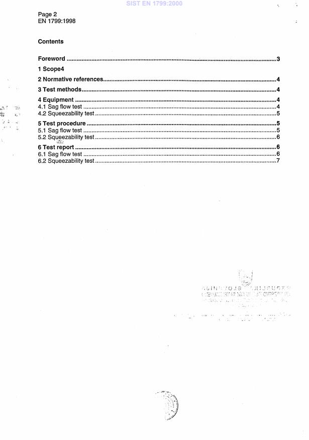 EN 1799:1998 is a standard published by the European Committee for Standardization (CEN). Its full title is "Products and systems for the protection and repair of concrete structures - Test methods - Tests to measure the suitability of structural bonding agents for application to concrete surface". This standard covers: This standard specifies methods of testing to measure the suitability of structural bonding agents for application to vertical and horizontal surfaces.