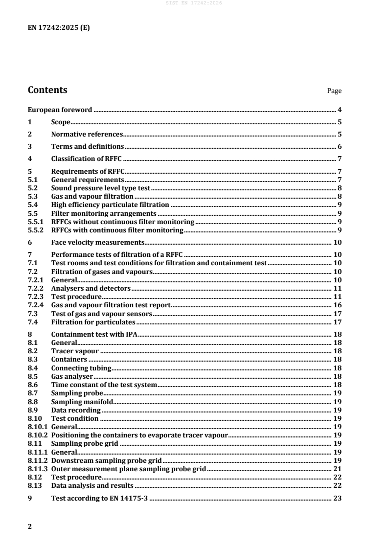 Keywords: EN 17242:2025, Recirculatory Filtration Fume Cabinets, RFFC, filtration testing, HEPA, gas and vapour filters, laboratory safety, CEN.