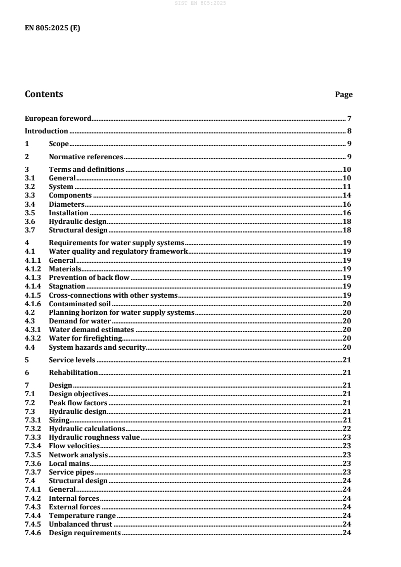 Keywords: EN 805:2025, water supply, external water mains, service pipes, hydraulic design, installation, reservoirs, water infrastructure resilience.