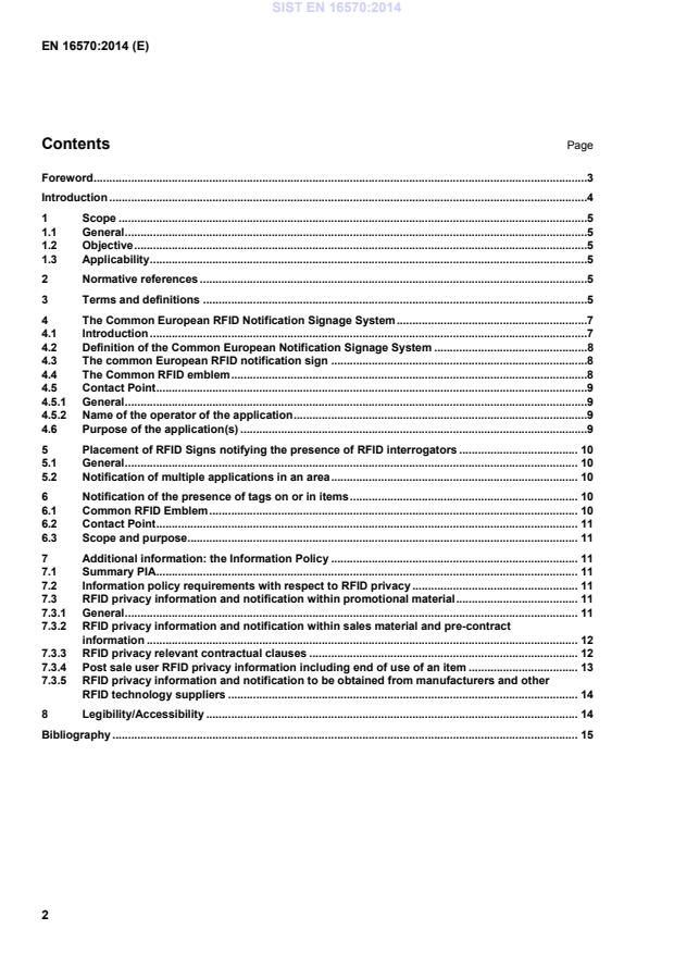 EN 16570:2014 (CEN) - "Information technology - Notification of RFID" - defines a Common European framework for notifying the public about deployed RFID systems. The standard specifies what an RFID notification sign should contain, how it should present information, and what additional information policy operators must provide so individuals can obtain privacy-related details. EN 16570:2014 is application‑agnostic and intended for use across EU Member States by enterprises operating RFID applications.