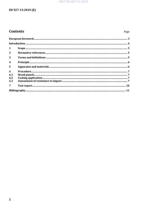 EN 927-13:2019 is a standard published by the European Committee for Standardization (CEN). Its full title is "Paints and varnishes - Coating materials and coating systems for exterior wood - Part 13: Assessment of resistance to impact of a coating on a wooden substrate". This standard covers: This document specifies a test method for assessing the resistance of a coating to impact on a defined and carefully selected wooden substrate for coatings on wood components in exterior use. The method is preferably used on coatings that have not been exposed to weathering. The method is suitable for use either as a means of comparing different coating systems or as a quality control test to ensure that a specified performance level is being achieved or maintained.