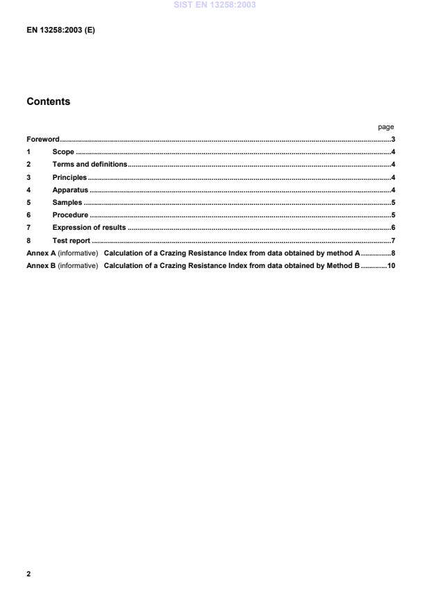 Diese Europäische Norm legt zwei Prüfverfahren fest (Verfahren A und B) für die Bestimmung der Haar-rissbeständigkeit von glasierten Gegenständen in Kontakt mit Lebensmitteln, deren Wasseraufnahmefähigkeit höher als 0,5 % ist (bestimmt nach Verfahren C nach EN 1217:1997). Verfahren A ist eine Prüfung der Beständig-keit gegen Haarrissbildung infolge von Feuchtigkeitsdehnung. Verfahren B ist eine Prüfung der Beständigkeit gegen Haarrissbildung infolge einer thermischen Schockbeanspruchung; sie entspricht im Wesentlichen EN 1183:1995.