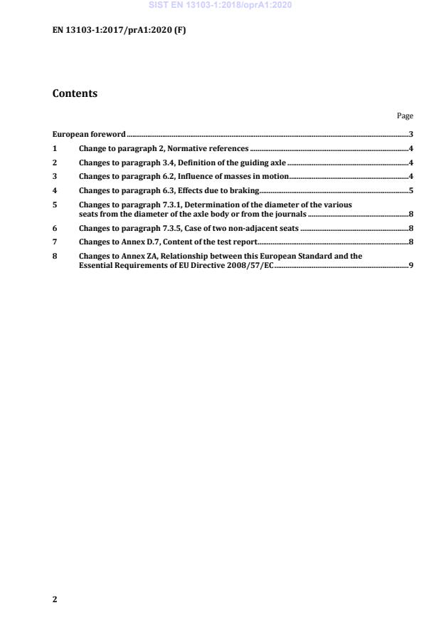 Fatigue testing and verification: The amendment references test-report requirements and verification on representative axles (see prEN 13261 and EN 13260 for fatigue test specimen information).