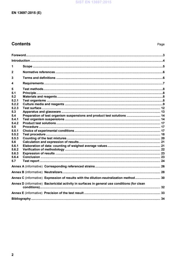 2003-01.Slovenski inštitut za standardizacijo. Razmnoževanje celote ali delov tega standarda ni dovoljeno.Chemische Desinfektionsmittel und Antiseptika - Quantitativer Oberflächen-Versuch nicht poröser Oberflächen zur Bestimmung der bakteriziden und/oder fungiziden Wirkung chemischer Desinfektionsmittel in den Bereichen Lebensmittel, Industrie, Haushalt und öffentliche Einrichtungen - Prüfverfahren und Anforderungen ohne mechanische Behandlung (Phase 2, Stufe 2)Antiseptiques et désinfectants chimiques - Essai quantitatif de surface non-poreuse pour l'évaluation de l'activité bactéricide et/ou fongicide des désinfectants chimiques utilisés dans le domaine de l'agro-alimentaire, dans l'industrie, dans les domaines domestiques et en collectivité - Méthode d'essai sans action mécanique et prescriptions (phase 2/étape 2)Chemical disinfectants and antiseptics - Quantitative non-porous surface test for the evaluation of bactericidal and/or fungicidal activity of chemical disinfectants used in food, industrial, domestic and institutional areas - Test method and requirements without mechanical action (phase 2, step 2)71.100.35Kemikalije za dezinfekcijo v industriji in domaChemicals for industrial and domestic disinfection purposesICS:Ta slovenski standard je istoveten z:EN 13697:2015SIST EN 13697:2015en,fr,de01-junij-2015SIST EN 13697:2015SLOVENSKI