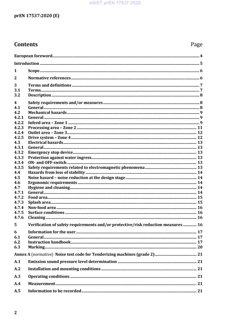 prEN 17537 is a draft published by the European Committee for Standardization (CEN). Its full title is "Food processing machinery - Tenderizing machines - Safety and hygiene requirements". This standard covers: This document applies to tenderizing machines that are designed as table-top machines and are manually fed (hereinafter referred to as machine). Usually these machines are used for unfrozen foodstuffs (hereinafter referred to as product), e.g. boneless meat, meat products, fish, cheese or vegetables. These machines are not intended to be used with deep frozen foodstuffs. This document is not applicable to: - machines intended for domestic use; - machines with automatic loading. This document deals with all significant hazards, hazardous situations or hazardous events on tenderizing machines, when it is used as intended and under conditions of misuse which are reasonably foreseeable by the manufacturer. This document deals with the hazards which can arise during all the lifetime of the machine, including the phases of transport, assembly, commissioning, operation, cleaning, use, maintenance, decommissioning, dismantling, disabling and scrapping of the machine. This document is not applicable to machines which are manufactured before its date of publication as EN.