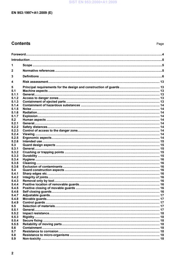 이 기사는 EN 953:1997+A1:2009 유럽 표준에 대해 다룹니다. 해당 표준은 주로 사람들을 기계적 위험으로부터 보호하기 위한 가드의 설계와 구조에 대한 일반 요구 사항을 명시합니다. 이 표준은 주로 이 표준 발행 이후에 제조된 기계에 적용됩니다. 비기계적 위험에 노출을 최소화하기 위해 가드 사용에 대한 주의가 필요합니다. 이 요구 사항은 고정 가드와 이동 가드가 사용되는 경우에 적용됩니다. 이 표준은 인터록킹 장치를 작동시키는 가드 부분을 다루지 않습니다. 이 부분은 EN 1088에서 다루고 있습니다. 또한, 이 표준은 롤오버 보호 구조물(ROPS) 및 낙하물 보호 구조물(FOPS)과 같이 이동성과 하중 옮김 능력에 특화된 특수 시스템에 대한 요구 사항을 제공하지 않습니다.