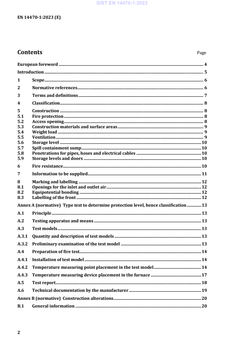 Es legt Anforderungen bezüglich der Konstruktion des feuerwiderstandsfähigen Lagerschrankes und seiner Fähigkeit fest, äußerer Brandeinwirkung standzuhalten. Es wird eine Einteilung der feuerwiderstandsfähigen Lagerschränke nach dem Grad der Feuerwiderstandsfähigkeit vorgenommen, und es wird eine Baumusterprüfung festgelegt, siehe Anhang A.