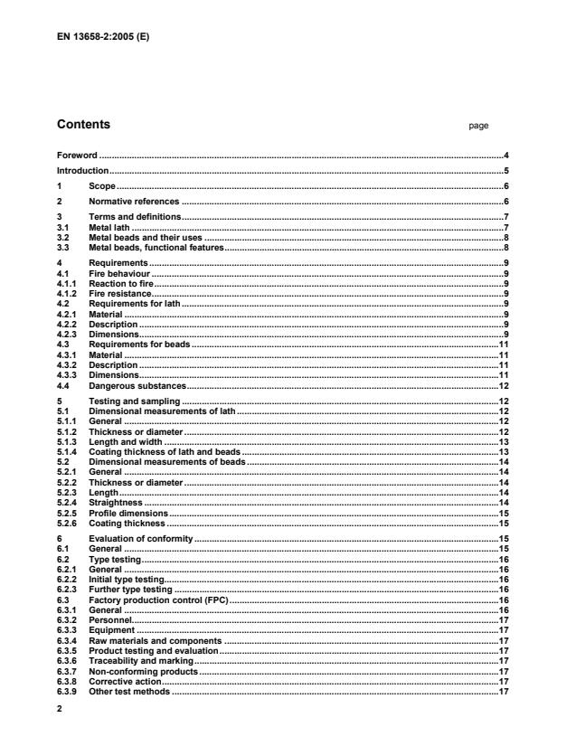 Keywords: EN 13658-2:2005, metal lath, metal beads, external rendering, requirements, test methods, fire protection, CE marking, CEN.