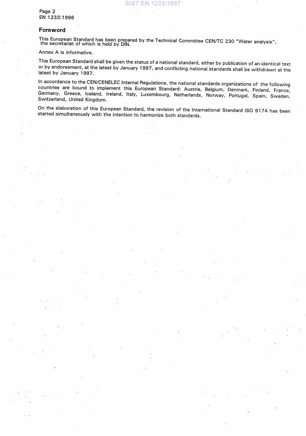 EN 1233:1996 is associated with the following European legislation: EU Directives/Regulations: 76/464/EEC; Standardization Mandates: M/BC/CEN/92/45. When a standard is cited in the Official Journal of the European Union, products manufactured in conformity with it benefit from a presumption of conformity with the essential requirements of the corresponding EU directive or regulation.