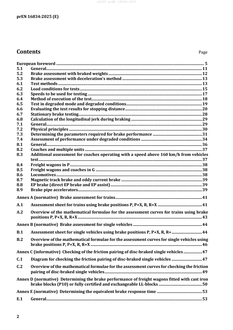 - Test methods and execution: Standardized procedures for dynamic braking trials, stationary brake testing and limited testing methods (see Annex D for freight wagons with P10 cast-iron or LL-blocks).