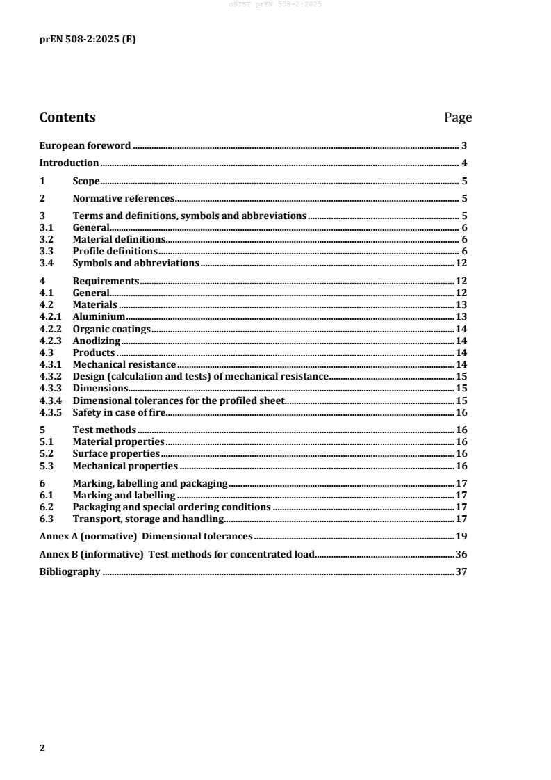 The prEN 508-2:2025 is a European standard developed by CEN that specifies the requirements for self-supporting roofing and cladding products made from aluminium metal sheet. It forms part of the EN 508 series that covers metal sheet products for roofing and wall cladding, focusing exclusively on aluminium sheets in discontinuous laying. The standard outlines essential characteristics, classifications, and labelling, as well as material and product requirements to ensure durability and performance under typical service conditions.