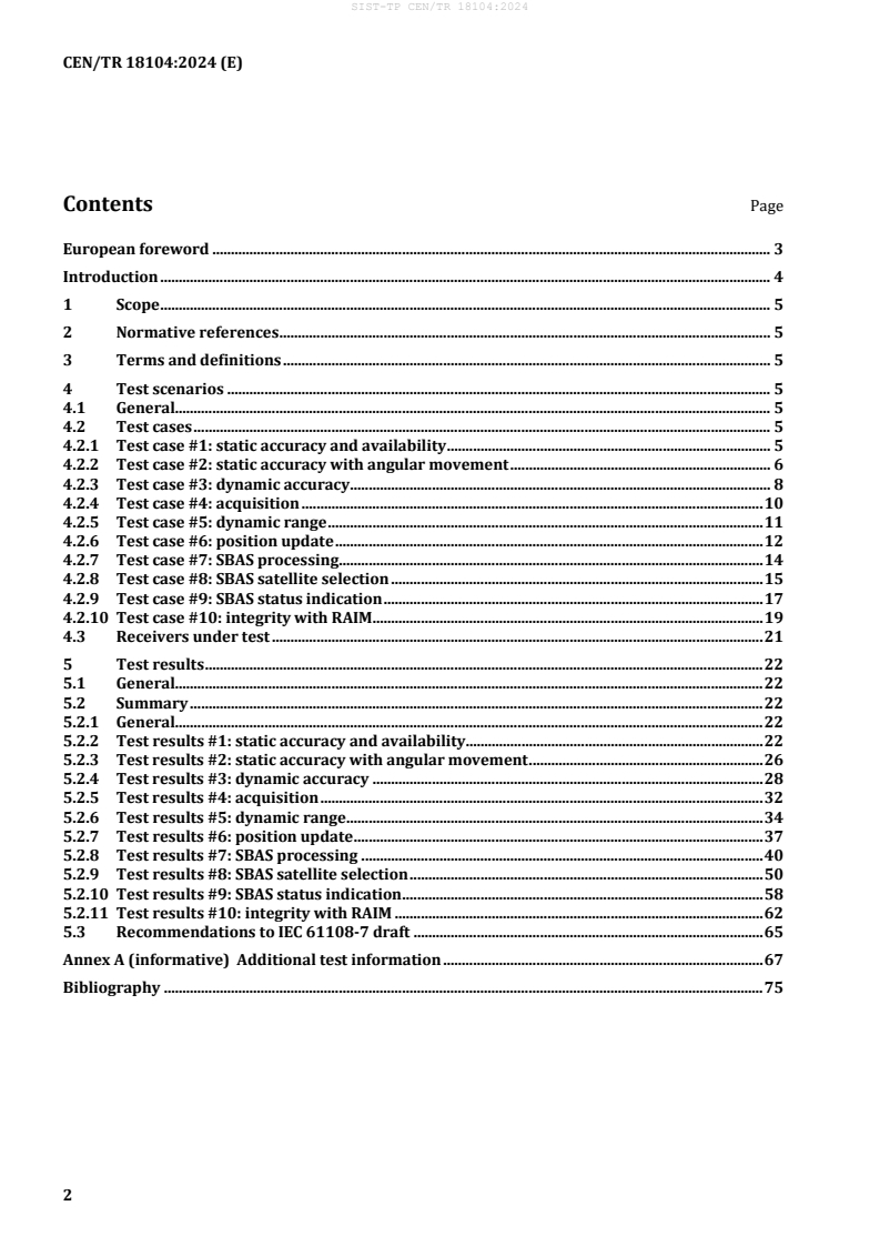 Seznam pripravljenih preskusnih scenarijev, analiziran sprejemnik, uporabljena konfiguracija in postopki so vključeni v točki 4. V točki 5 so predstavljeni grafični in številski rezultati za posamezni izveden preskus, vključno s tem, ali je bil preskus uspešen ali neuspešen. Dodatek A vsebuje dodatne informacije o pripravi primera preskusa.