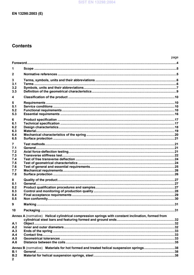Materials for hot formed and treated helical suspension springs.38B.1General.38B.2Material for helical suspension springs, steel.38SIST EN 13298:2004