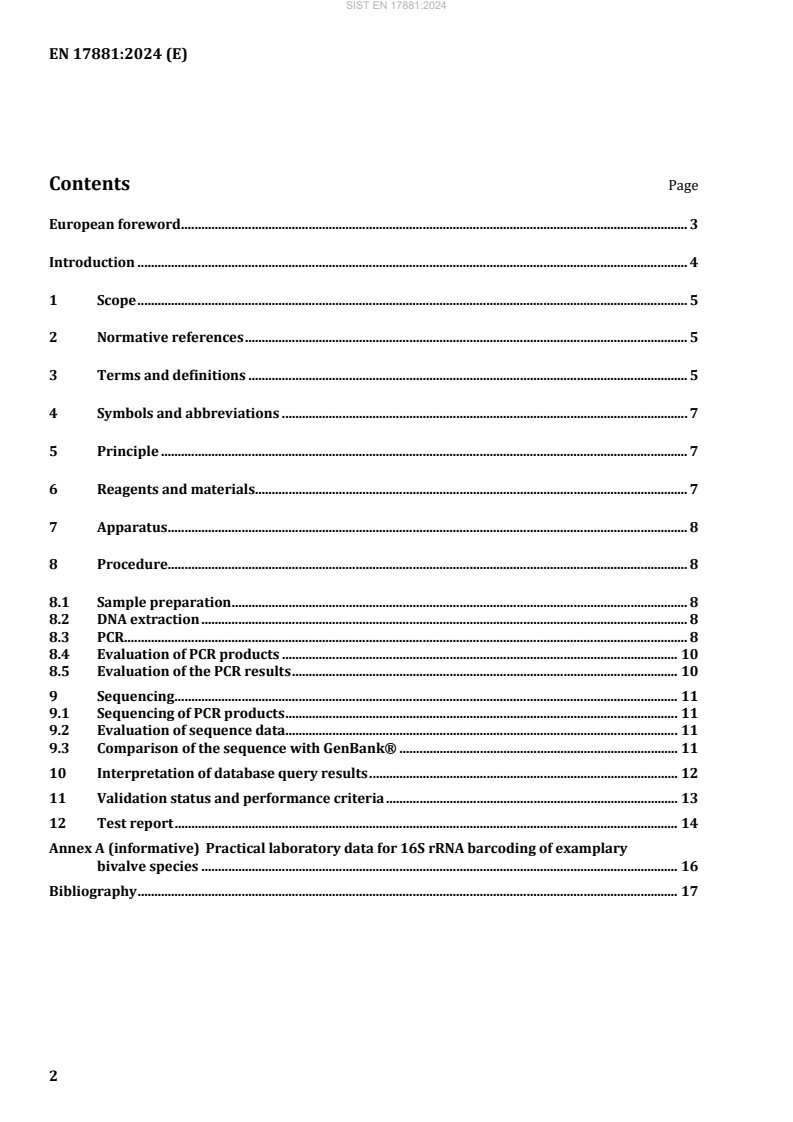 Keywords: EN 17881:2024, DNA barcoding, bivalves, 16S rRNA, food authenticity, seafood authentication, PCR, sequencing, CEN, mussel identification.