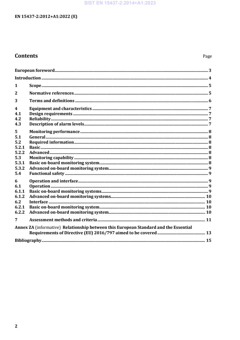 기사 제목: EN 15437-2:2012+A1:2022 - 철도응용 - 축박스 상태 모니터링 - 인터페이스 및 설계 요구사항 - 파트 2: 온도 모니터링을 위한 차량용 시스템의 성능 및 설계 요구사항 기사 내용: 이 유럽 표준은 온도 측정을 통한 축박스 상태 모니터링을 위한 차량용 모니터링 시스템의 최소 성능 요구사항을 정의한다. 이 유럽 표준은 축박스의 온도 모니터링을 언급하지만, 디자인은 구르는 베어링 자체를 직접 모니터링할 수 있도록 할 수 있다. 이 유럽 표준의 요구사항은 축박스 온도 모니터링을 위한 기본적인 모니터링 시스템부터 메카트로닉스의 조합을 사용할 수 있는 기술적으로 복잡한 시스템까지 동등하게 적용하기 위해 작성되었다. 모니터링 시스템의 호환성과 효과적인 모니터링 기능을 보장하기 위해 이 유럽 표준은 다음 영역에서 요구사항을 정의한다: - 장치 및 특성; - 모니터링 성능; - 운용 및 인터페이스. 이 EN 15437 파트는 다음을 포함하지 않는다: - 운전자에게 표시하지 않는 시스템; - 차량 내 모니터링 시스템의 구조 및 온도 측정 방법. 이는 이 표준에서 설명된 기능적 요구사항의 일부가 아니라 장비 설계의 일부로 간주된다; - 차량 내 모니터링 시스템이 보고한 정보에 대한 작업 요구사항; - 트랙사이드 모니터링 시스템과 차량 내 모니터링 시스템 간의 정보 충돌에 대한 운용 요구사항; - 차량용 온도 모니터링 시스템의 유지보수 요구사항.