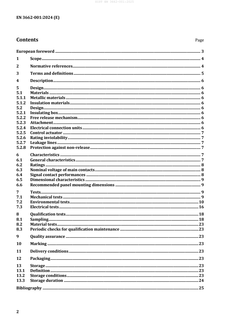 EN 3662-001:2024 is a standard published by the European Committee for Standardization (CEN). Its full title is "Aerospace series - Circuit breakers, three-pole, temperature compensated, rated currents 20 A to 50 A - Part 001: Technical specification". This standard covers: This document specifies the three-pole temperature compensated circuit breakers with signal contacts, polarized or not, rated from 20 A to 50 A and used in aircraft on-board circuits. It describes specific environmental, electrical and mechanical characteristics and the stringency of tests to be applied according to test methods of EN 3841-100. These circuit breakers are intended for use in aircraft with electrical supplies in accordance with EN 2282 (all categories).