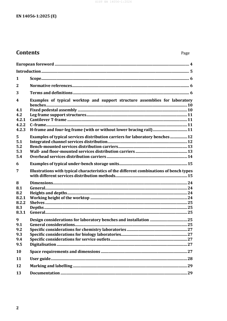 Keywords: EN 14056-1:2025, laboratory furniture, laboratory benches, design and installation, services distribution carriers, worktops, storage units, lab fit‑out, CEN.