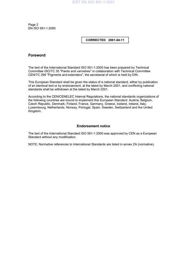 EN ISO 591-1:2000 is classified under the following ICS (International Classification for Standards) categories: 87.060.10 - Pigments and extenders. The ICS classification helps identify the subject area and facilitates finding related standards.