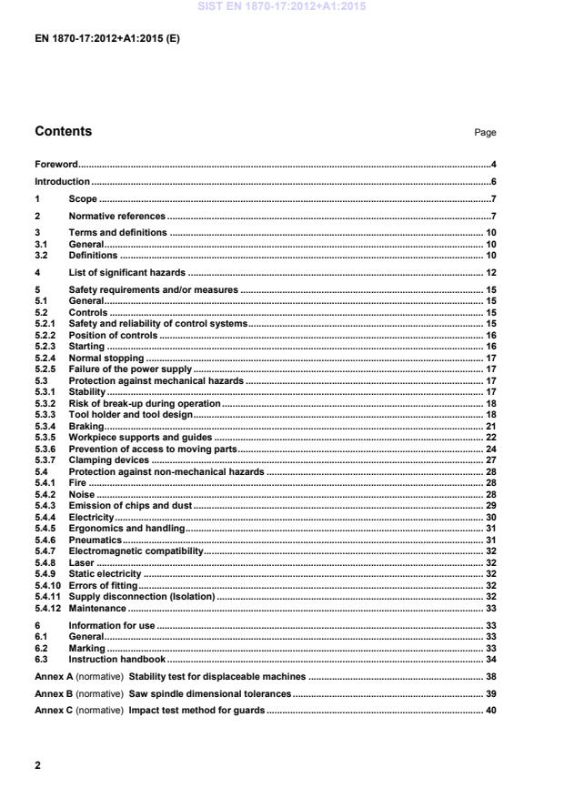 - Testing & annexes: normative annexes include stability tests, spindle tolerances, guard impact tests and brake tests.