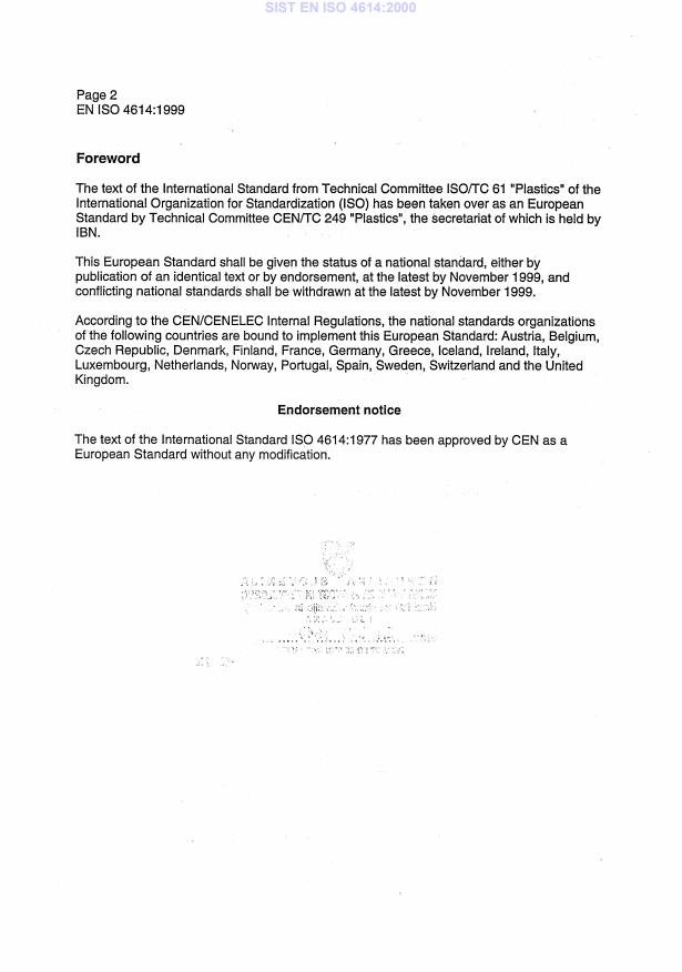 EN ISO 4614:1999 is classified under the following ICS (International Classification for Standards) categories: 83.080.01 - Plastics in general. The ICS classification helps identify the subject area and facilitates finding related standards.