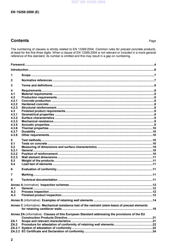 This European Standard deals with the requirements, the basic performance criteria and evaluation of conformity for precast elements made of plain, reinforced or prestressed normal weight concrete, used for the construction of retaining walls.