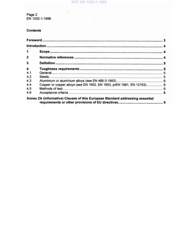 EN 1252-1:1998 is a standard published by the European Committee for Standardization (CEN). Its full title is "Cryogenic vessels - Materials - Part 1: Toughness requirements for temperatures below -80°C". This standard covers: This European standard specifies the toughness requirements of metallic materials for use at a temperature below - 80 øC to ensure their suitability for cryogenic vessels. This standard is not applicable to unalloyed steels and cast materials. This standard is not applicable to cryogenic vessels for liquefied natural gas (LNG).