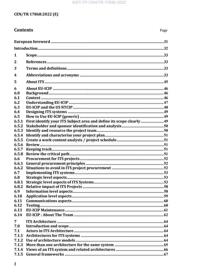 CEN/TR 17868:2022 - "Intelligent transport systems - EU-ICIP - ITS standards deliverables (2022)" is a CEN technical report that maps and explains the body of ITS standards and related deliverables from CEN, ISO and other standards development organizations (SDOs). It acts as a practical guide to EU-ICIP (EU ITS Common Interoperability Principles) by consolidating references, hotlinks, and contextual guidance for designing, procuring, implementing and maintaining ITS solutions across Europe.