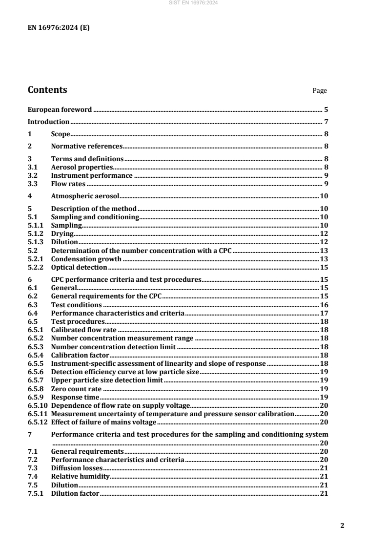 EN 16976:2024 is a standard published by the European Committee for Standardization (CEN). Its full title is "Ambient air - Determination of the particle number concentration of atmospheric aerosol". This standard covers: This document specifies a standard method for determining the particle number concentration in ambient air in a range up to about 107 cm–3 for averaging times equal to or larger than 1 min. The standard method is based on a Condensation Particle Counter (CPC) operated in the counting mode and an appropriate dilution system for concentrations exceeding the counting mode range. It also defines the performance characteristics and the minimum requirements of the instruments to be used. The lower and upper sizes considered within this document are 10 nm and a few micrometres, respectively. This document gives guidance on sampling, operation, data processing and QA/QC procedures including calibration parameters.