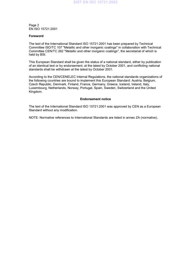 EN ISO 15721:2001 is classified under the following ICS (International Classification for Standards) categories: 25.220.40 - Metallic coatings. The ICS classification helps identify the subject area and facilitates finding related standards.