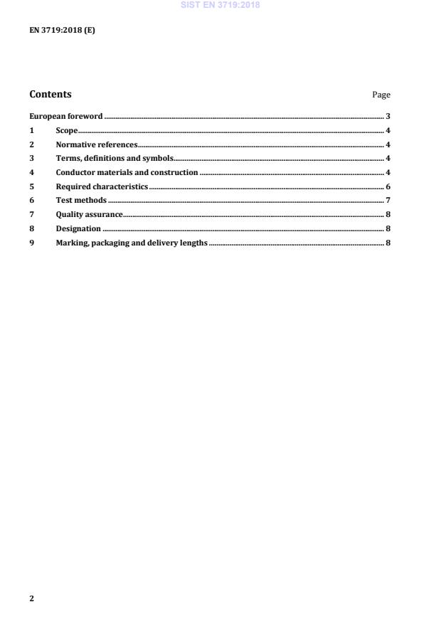 The European Standard EN 3719:2018 outlines the specifications for aluminium or aluminium alloy conductors used in electrical cables for aerospace applications. It covers details such as dimensions, linear resistance, mechanical characteristics, construction, and mass of the conductors. The standard only applies to stranded conductors with nominal cross-sections ranging from 5 mm2 to 107 mm2.