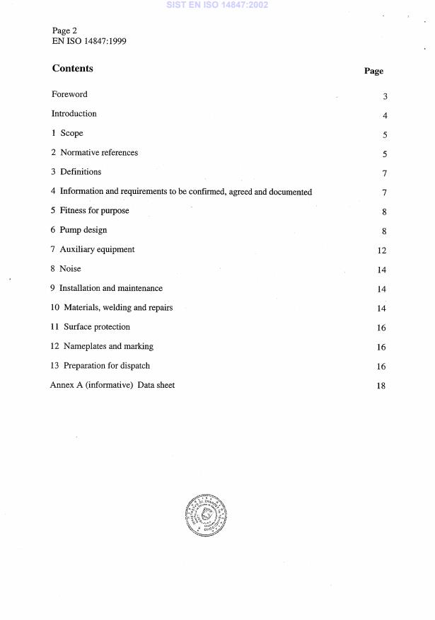 Keywords: EN ISO 14847:1999, rotary positive displacement pumps, technical requirements, rotary pump units, pump standard, SIST EN ISO 14847:2002.