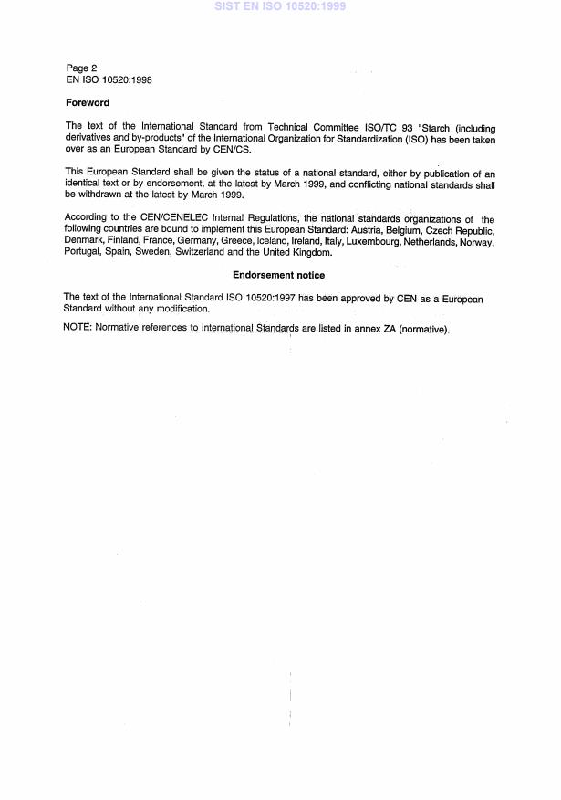 EN ISO 10520:1998 is a standard published by the European Committee for Standardization (CEN). Its full title is "Native starch - Determination of starch content - Ewers polarimetric method (ISO 10520:1997)". This standard covers: Migrated from Progress Sheet (TC Comment) (2000-07-10): UAP to be launched on this WI as soon as ISO 10520 is published. ++ gdj/1996_05_14