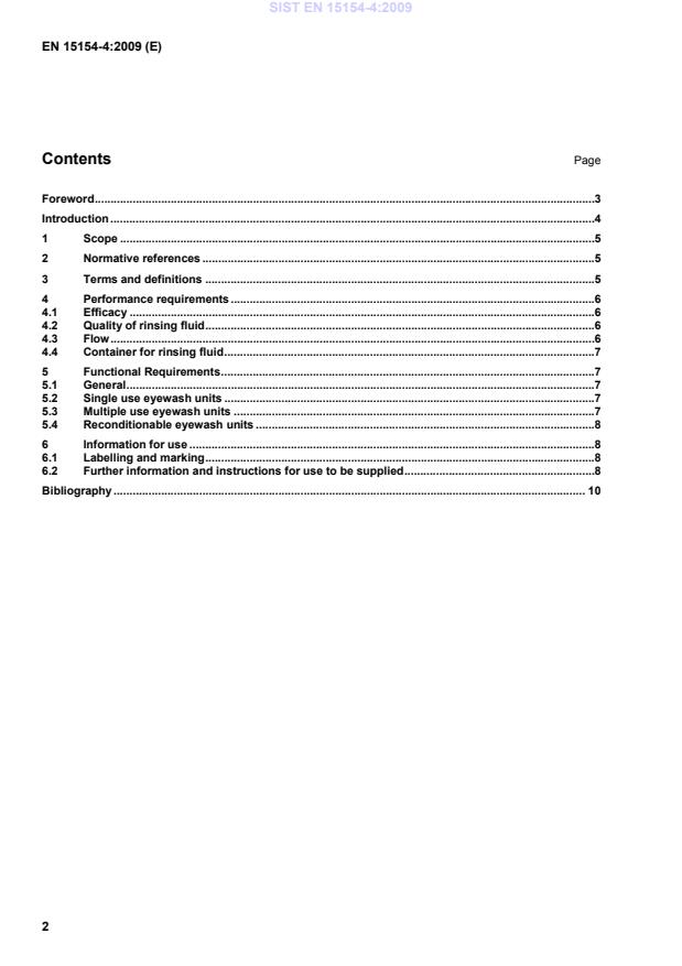 Introduction The first seconds after an accident in which the eyes have been exposed to harmful substances are critical to keep the eye injury to a minimum. Non plumbed-in emergency safety eyewash units are designed and intended to be kept in the immediate proximity of persons working in a potentially hazardous area. The main purpose of these devices is to supply immediate primary flushing. Non plumbed-in emergency safety eyewash units can also allow continued flushing on the way to medical care. SIST EN 15154-4:2009