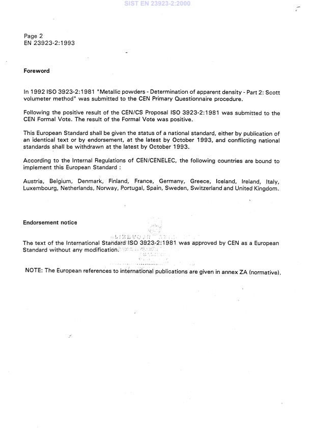 - Reference to the EN 23923-2:1993 standard.