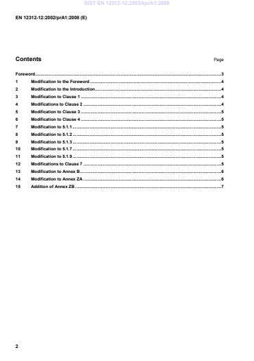 This draft amendment A1, if approved, will modify the European Standard EN 12312-12:2002. If this draft becomes an amendment, CEN
