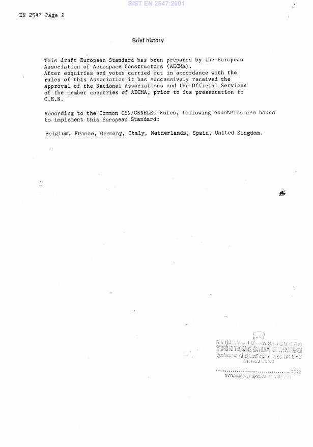 Ta slovenski standard je istoveten z: EN 2547:1987