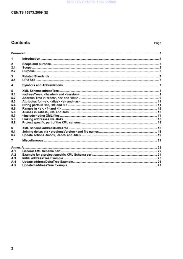 CEN/TS 15873:2009 - "Postal Services - Open Standard Interface - Address Data File Format for OCR/VCS Dictionary Generation" - defines an XML‑based Address Data File (ADF) format for exchanging postal address directories used by automatic address reading (OCR) and video coding systems (VCS). The specification standardizes a project‑customizable XML schema (addressTree and addressDeltaTree) intended to carry all information needed by address‑reading software and forwarding applications while leaving implementation details such as compression and transmission interfaces outside its scope.